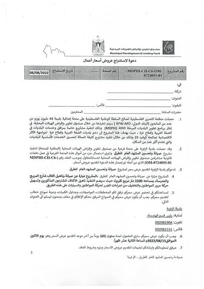 اعلان استدراج عروض لمشروع صيانة وتحسين المشهد العام للطرق “اكتاف شوارع”